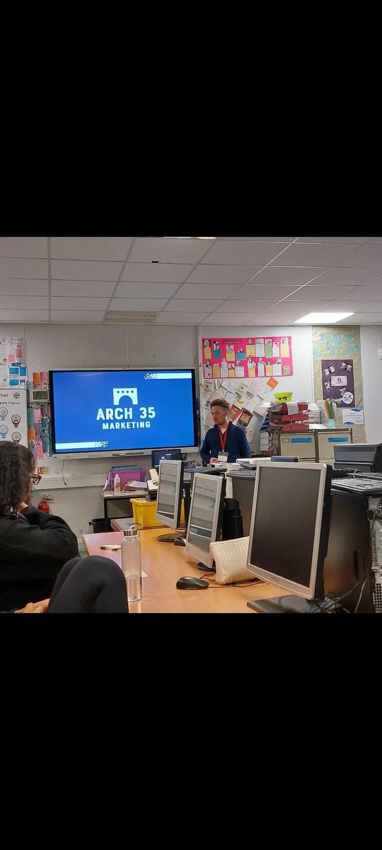 The sessions were designed to give students an honest look into what life is really like in the fast-paced world of marketing, from managing client campaigns to developing strategies that drive measurable results. Darren shared the story behind Arch 35’s journey, the challenges of starting a business coming from an engineering background after secondary school, and how creativity, data, and consistency come together to form the backbone of a successful Aberdeen marketing agency.
